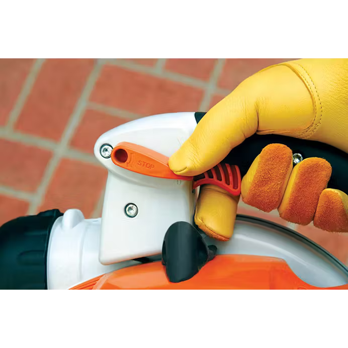 The built-in stop switch allows the user to turn off the engine with a simple press of the button or lever. When the engine is off, the throttle lock automatically returns to the “start” setting. Your power tool will be ready to be started when you’re ready to get back to work. -