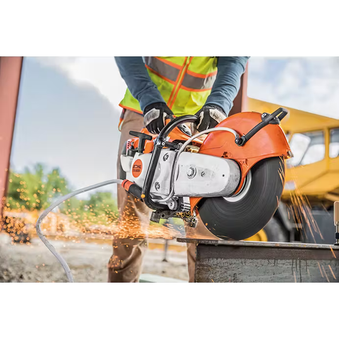 Abrasive cutting just got more cutting edge. STIHL introduces another industry first with the TS 500i STIHL Cutquik® cut-off machine—the first handheld outdoor power tool to offer an electronically controlled fuel-injection system. This system increases power and performance over 15% while remaining lightweight and well-balanced. The fuel injection system makes starting easier and more reliable by eliminating the choke. Just set the switch to on, prime, and pull.