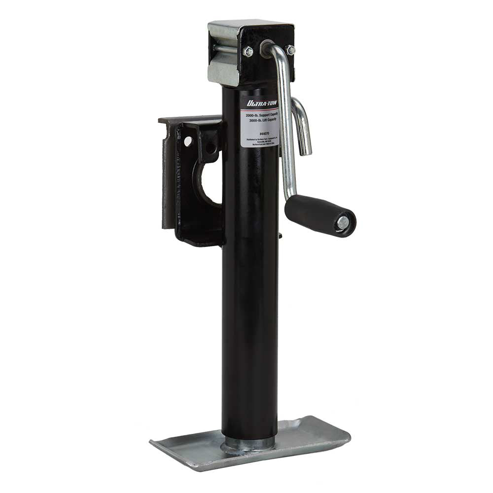 This Ultra-Tow® Snap Ring Sidewind Swivel Jack is a reliable, easy-to-use 2 1/4in. dia. tube jack with a deep-seated snap ring that provides side load support. The large 1/2in. pull pin activates the swivel mechanism, allowing the jack to swing up and out of the way when not in use. 2000-lb. lift capacity; 3000-lb. support capacity. 11 1/4in. retracted length; 21 1/4in. extended length.