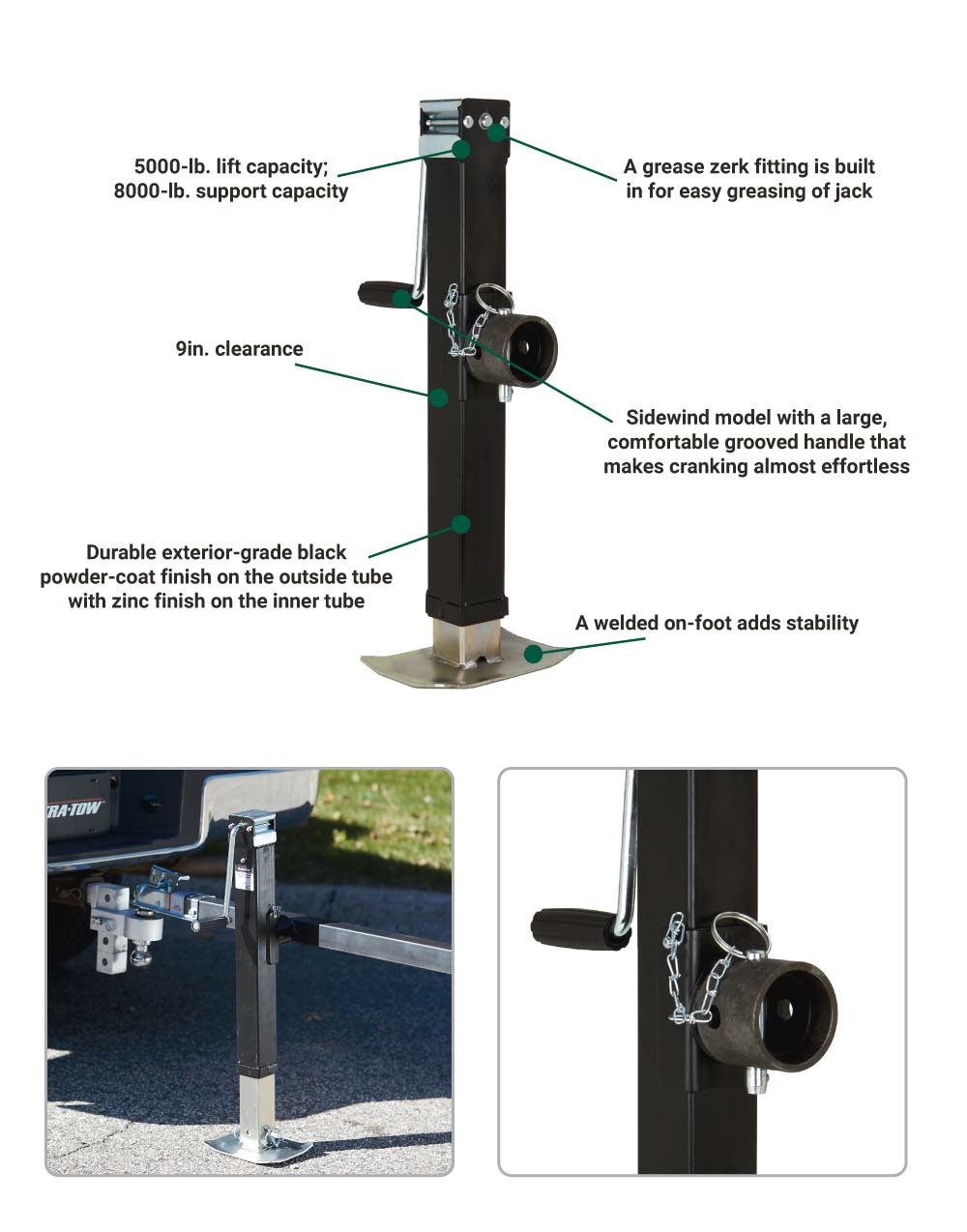 (44076.ULT) Ultra-Tow Sidewind Square Tube-Mount Jack | 5000-Lb. Lift Cap