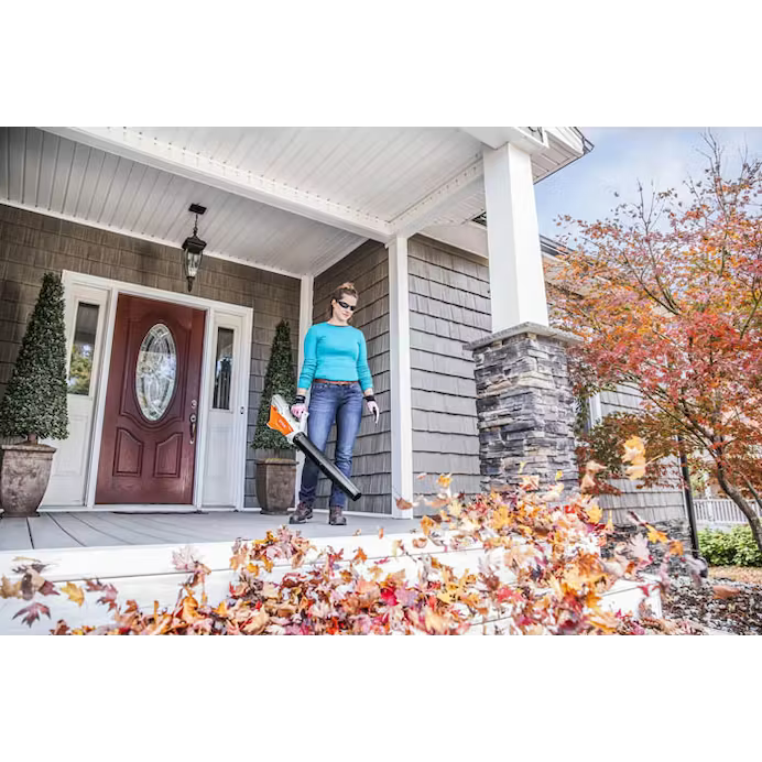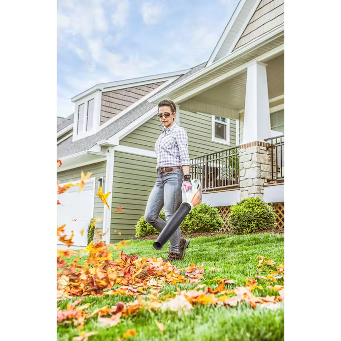 Lightweight, handheld blower with integrated battery — ideal for smaller residential yards.
