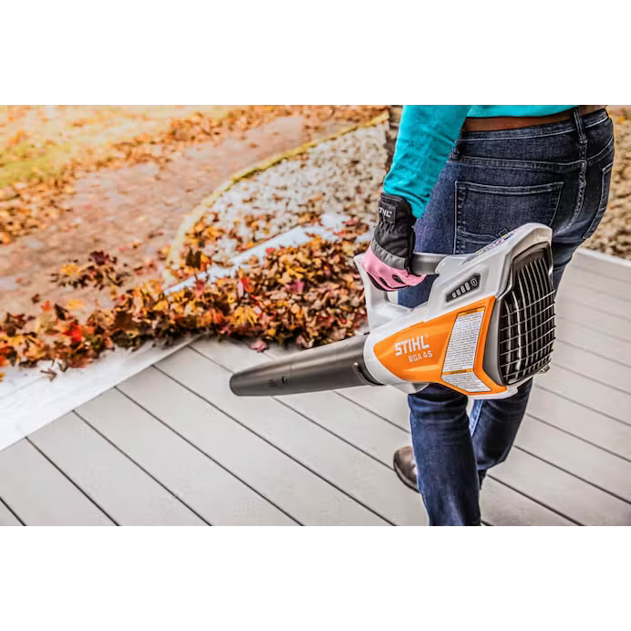 Part of the AI Series, the BGA 45 handheld blower delivers the power you need at an incredible value. It is exceptionally quiet and lightweight at 4.9 lbs., including integrated battery. On a single charge, the BGA 45 can clear more than 13 parking spaces (2,153 square ft.) with a blowing speed of 89 mph and an air volume of 247 cfm. If you own a small property and need a quick go-to blower for your driveway and walkways, the BGA 45 is the complete package. Usage claim tested and verified by an independent third-party test laboratory. Run time may vary based on battery type, charge level and capacity, model, operating style and conditions. Comes with integrated battery and charger.