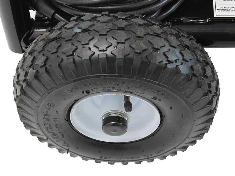 - Includes heavy-duty 1¼" tubular frame with pneumatic wheels for ease of portability for the most demanding jobs.