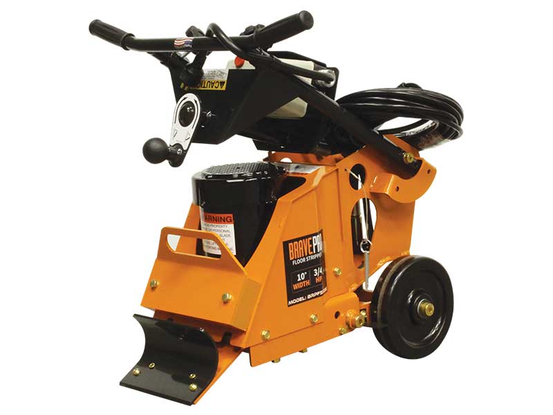 This BravePro manually propelled floor stripper offers a unique blade angle control system, a centralized bearing lubrication system and an adjustable operator handle that folds forward for easy transport.