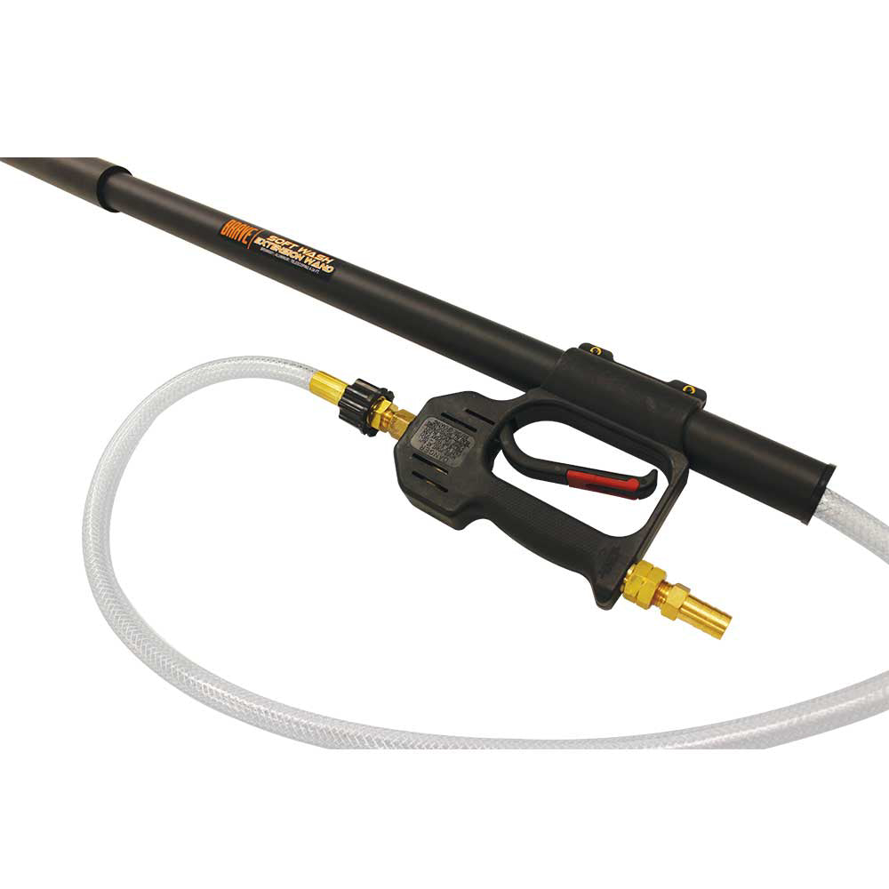 Heavy-duty aluminum telescoping soft wash extension wand. Includes gun and hose. Extend your reach up to 52 ft. high.
