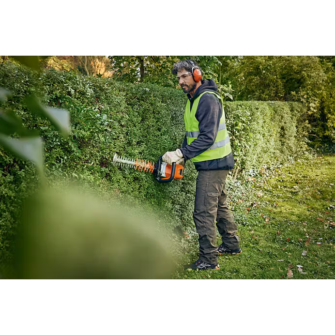 The HSA 100 features exceptional cutting quality thanks to double-sided blades and the ergonomic handle. The rotating handle provides a well-balanced grip while allowing you to easily change cutting direction. The HSA 100 features a blade tip guard and blade guard to help you work confidently and safely. Ideal for hedge cutting in noise-sensitive areas, the battery-powered brushless motor provides you with high torque in a lightweight package.