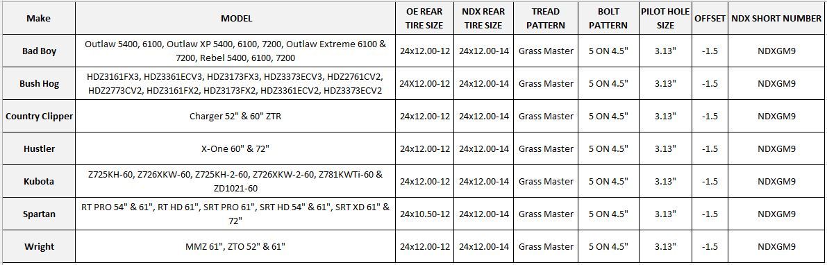 (NDXGM9) 24x12.00-14 NDX Air-Less Grass Master Assembly for Bad Boy, Bush Hog, Country Clipper, Ferris, Hustler, Kubota, Spartan and Wright (1 Tire Assembly)