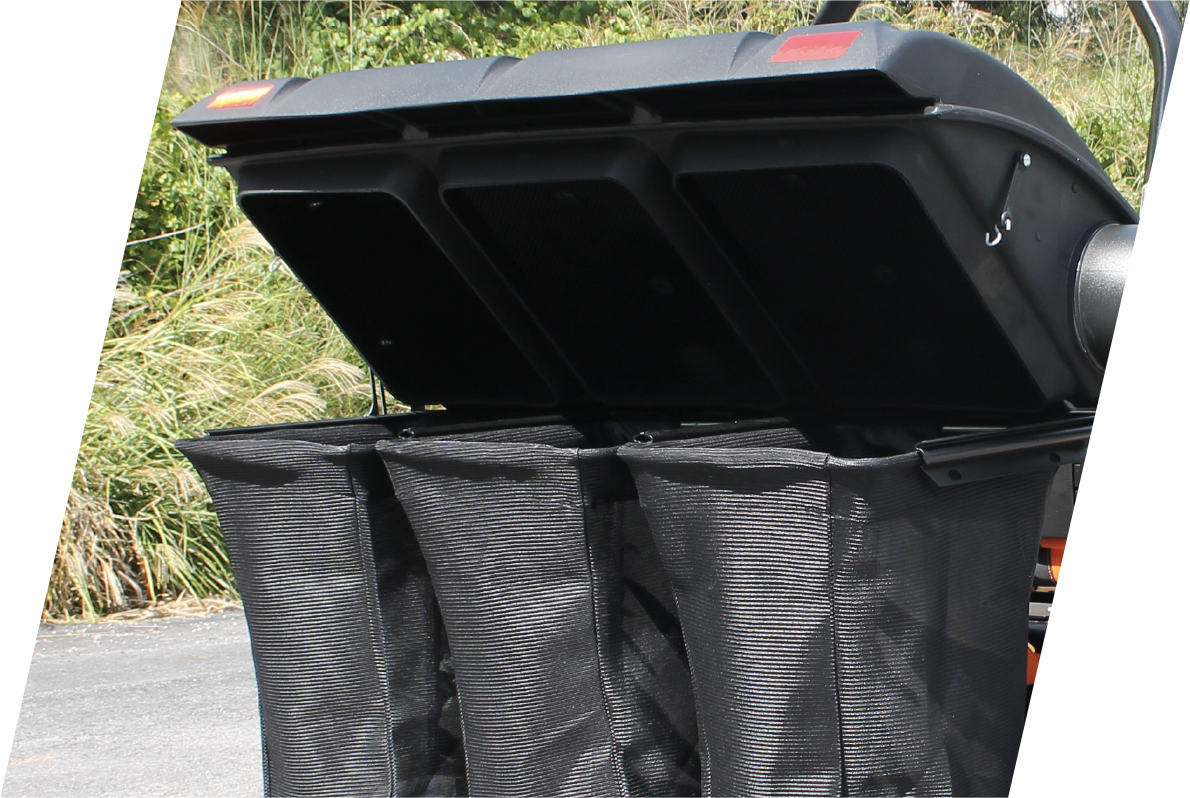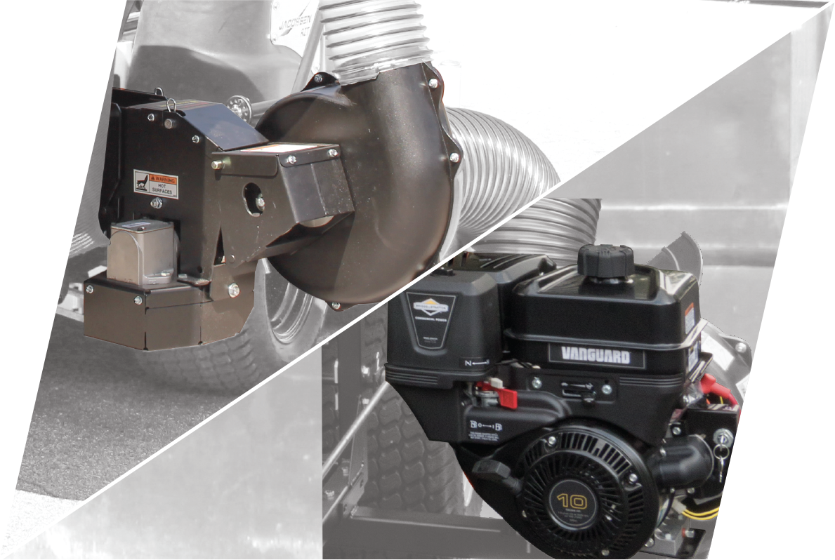 The PECO PTO drive is a unique way to power LawnVacs. So unique, in fact, that it has been granted a US patent. Unlike other baggers whose blowers are mounted on the deck and driven off the deck spindle, PECO blowers take their power directly from the engine. This allows the blower to engage independently of the deck, which reduces start up strain on the engine and belts. Making debris clean up easier and faster.