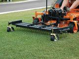 The JRCO Tine Rake Dethatcher Mount is available in 36, 46 or 60-inch widths for commercial walk-behind or riding mowers. The Tine Rake Dethatcher is the ultimate spring clean-up tool. Use the rake for the first mowing of the spring to remove thatch, embedded leaves and debris. The patented tines lift thatch without damaging healthy turfgrass and at the same time comb matted grass giving the lawn a clean, hand-raked appearance.
