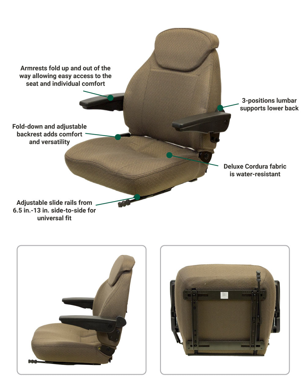Uni Pro | KM 440 Seat Assembly with Armrests | Brown Cordura Fabric (8283.KMM)