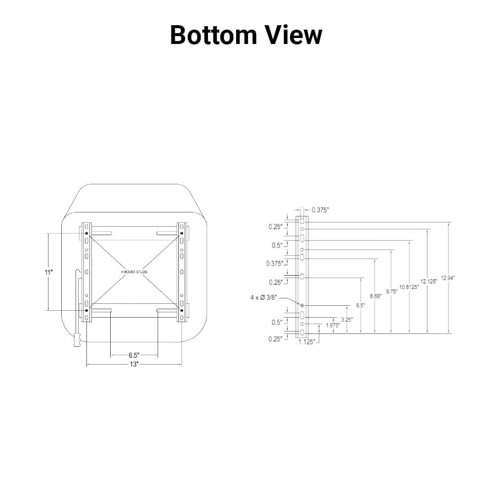 • Adjustable slide rails from 6.5 in. - 13 in. side-to-side for universal fit