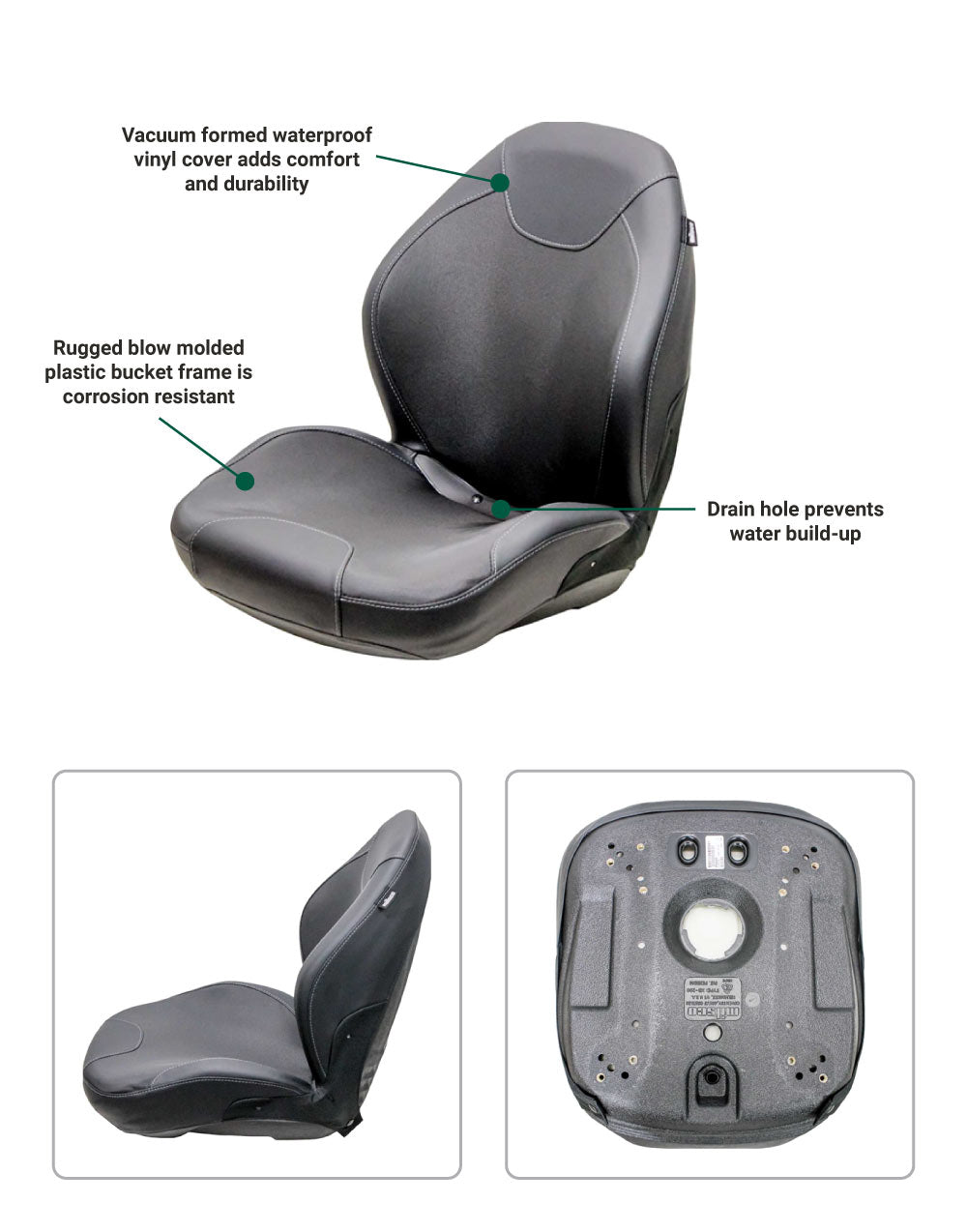 The Uni Pro KM 129 bucket seat is a riding mower replacement seat. Its cut-and-sew design is part of the next generation of bucket seats. By combining the durability of the XB Series seats with the great looks offered by cut-and-sew covers, the end product is an effective upholstered seat at a great cost. A multi-purpose replacement seat suitable for riding mowers and compact tractors, as well as garden, industrial, skid steer, and construction equipment to keep you comfortable.