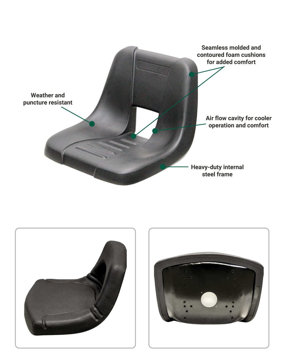 - Heavy-duty durable self-skinning polyurethane seat