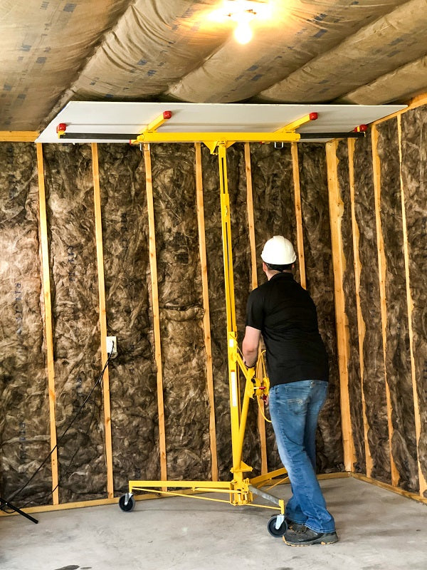 The original drywall lift from Telpro, Inc. is heavy-duty, easy to assemble and disassemble, portable, and allows one person to lift and install drywall panels with ease.