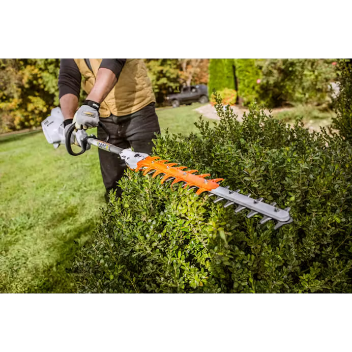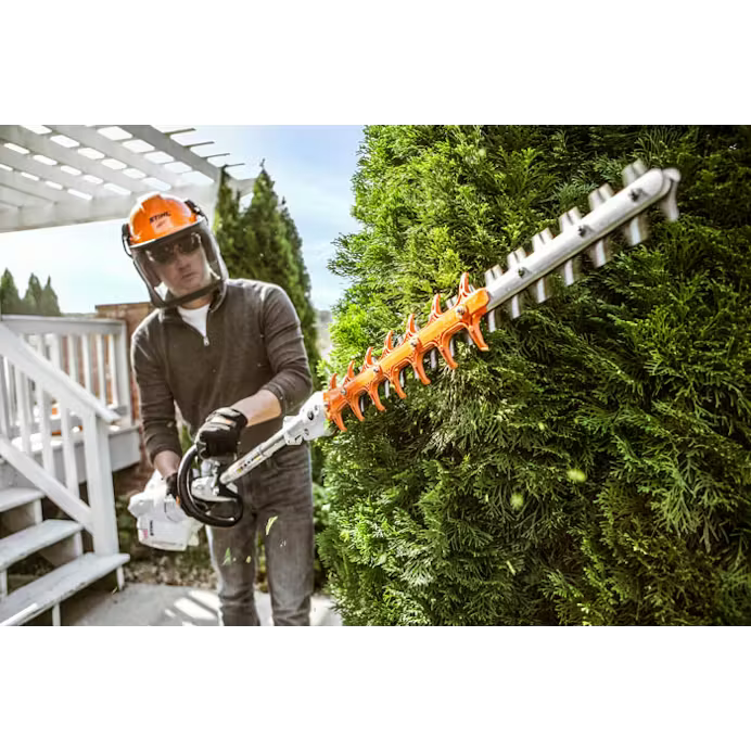 Maintain hard-to-reach hedges with the STIHL HL 56 K (0°) extended-reach hedge trimmer. Designed for homeowners and beginning landscapers, this gas-powered hedge trimmer has a 26-inch short shaft which makes it easy to handle. With its advanced, low exhaust emission, powerful two-stroke engine, the HL 56 K (0°) is fuel efficient for a lower cost of ownership over time. It features a lighter gearbox than previous models, shifting weight to the powerhead for better balance and maneuverability. The fixed-angle zero-degree blade allows users to trim hard-to-reach areas smoothly and precisely.