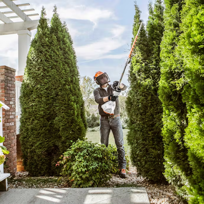 With a powerful and low exhaust emission engine, this lightweight, extended-length hedge trimmer is ideal for use with hard-to-reach hedges.