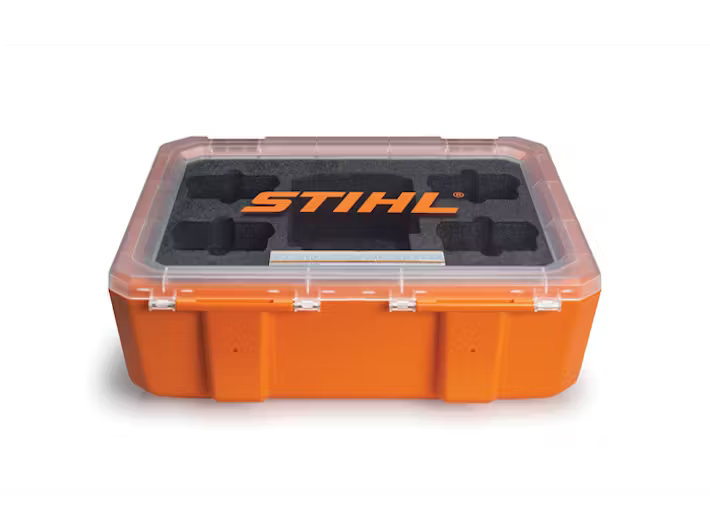 The Battery/Charger Carrying Case makes the transportation of your STIHL batteries and charger more convenient. Made with double wall protection and featuring a clear lid for easy viewing, this case is easily customized with optional inserts (sold separately) based on the user's transport needs. Four insert options are available to house a variety of battery and charger configurations.