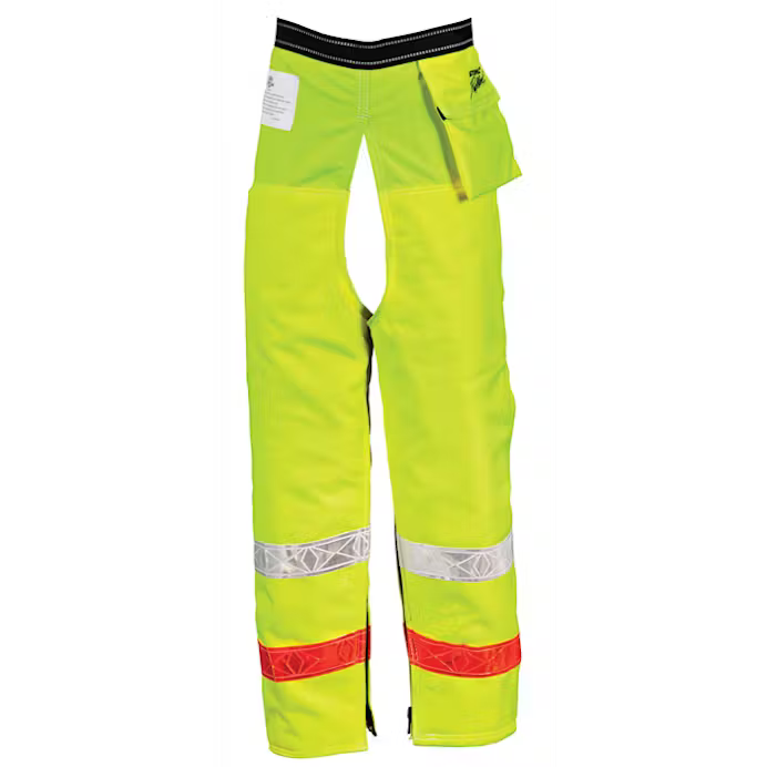 Enhanced protection meets enhanced visibility. The Pro Mark™ Hi-Vis Zip Chaps combine full wrap-around lower leg protection with high-visibility nylon fabric that meets Class E reflective requirements and earns a Class 3 reflective rating when worn with the Class 2 reflective vest. The chaps also feature reflective tapes made from Reflexite Brilliance Series GP-340, making them visible by motorists traveling up to 50 mph. They are an ideal solution for tree care and emergency service professionals working along roadways. Inside, nine layers of Avertic® Pro by Engtex® cut retardant material help protect the wearer from saw chain contact. Rows of heavy-duty zippers run along the entire inseam of the chaps, helping to ensure they are an effective fit and are easy to put on and/or remove.