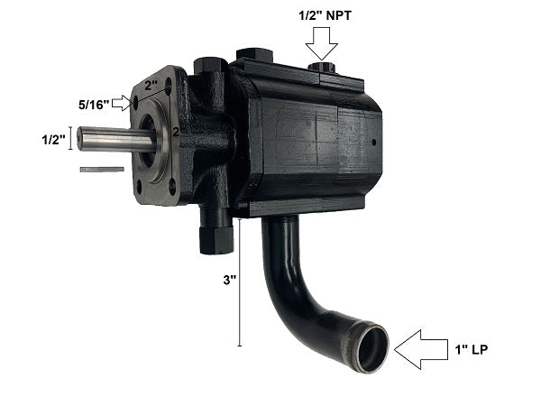PUMP - HYDRAULIC 16GPM (1002428), 1/2" shaft, key included (1" x 1/8"). In port fits 1" ID Low Pressure Hose / Out port 1/2" NPT High Pressure