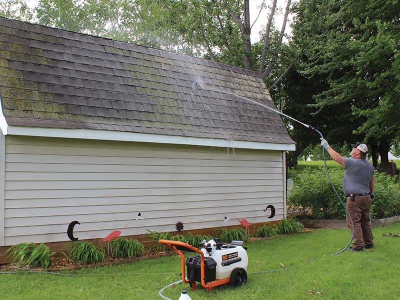 The BravePro Soft Wash System delivers high performance, low-impact cleaning to effectively remove and kill black mold, mildew, moss, lichens, and dirt from roofs, vinyl siding, decks, fences, bricks, and more — no scrubbing or high pressure required.
