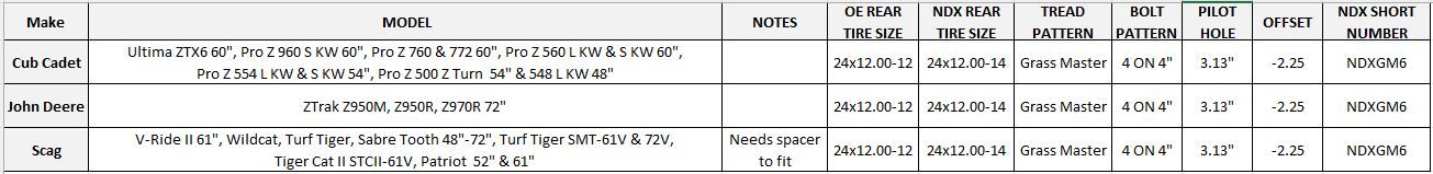 TO LOOK UP NDX AIR-LESS TIRE ASSEMBLY COMPATIBILITY BY MODEL PLEASE REFER TO: