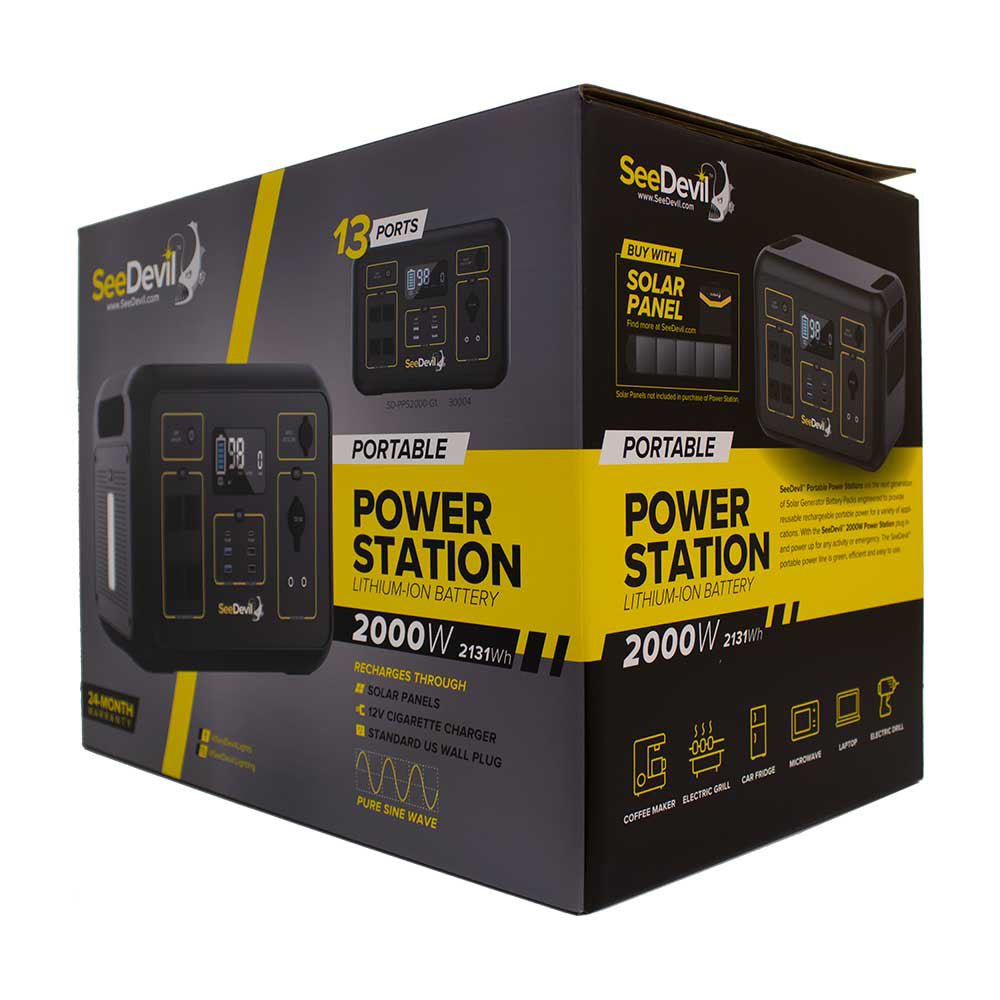 SeeDevil™ Portable Power Stations are the next generation of Solar Generator Battery Packs engineered to provide reusable rechargeable portable power for a variety of applications. With the SeeDevil™ 2000W Power Station plug in and power up for any activity or emergency. The SeeDevil™ portable power line is green, efficient and easy to use.